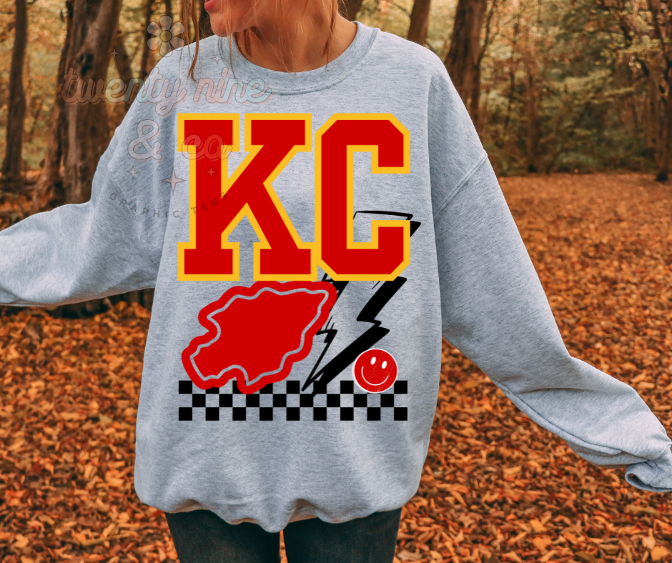 Cozy up in our KC Game Day crewneck! Retro varsity vibes meet bold graphics for the perfect game day look.