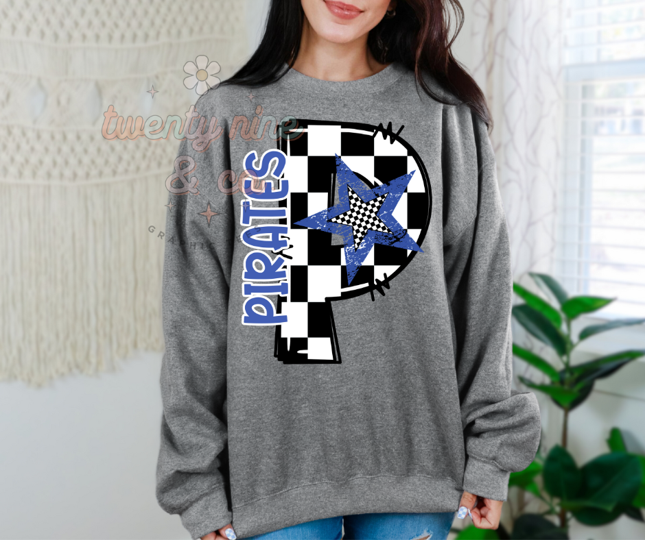 Rep the Pirates in style with our checkered star crewneck.. bold, cozy, and perfect for game day. 🏴⭐️