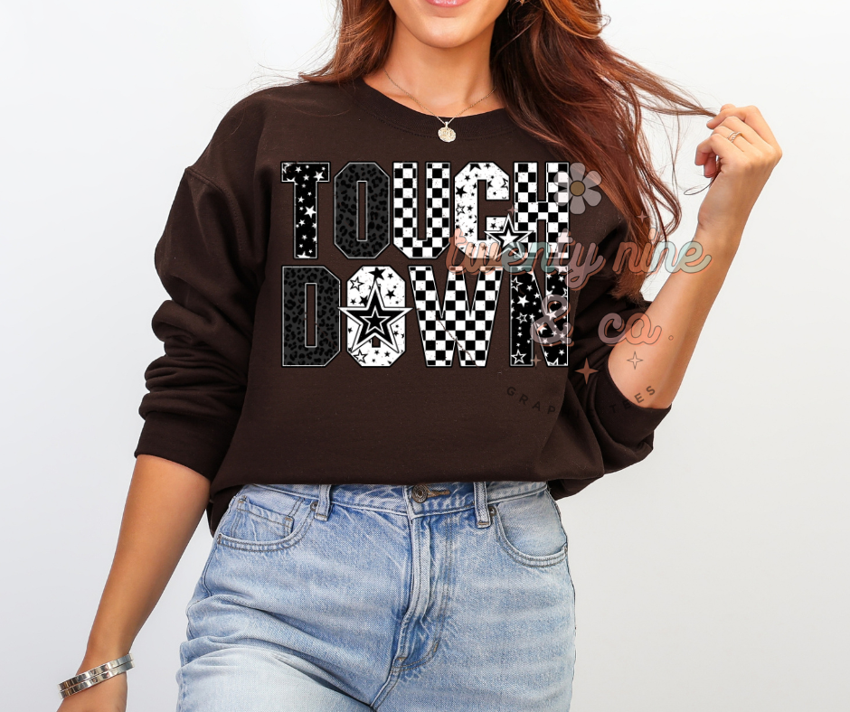 Touchdown! This star-print crewneck brings cozy comfort + standout style to every game day.